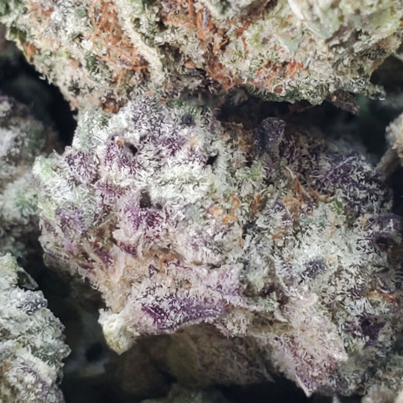 Appearance: | Very dense rounded, olive green nugs with deep purple undertones, thin orange hairs and tiny, purple-tinted white crystal trichomes |