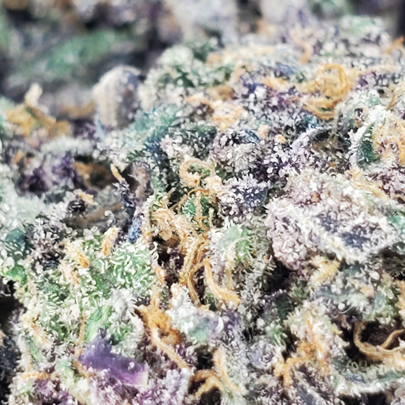 | Appearance | Dense, purple frosty buds coated in shimmering trichomes often giving the flowers an almost sugary, crystalized look. |