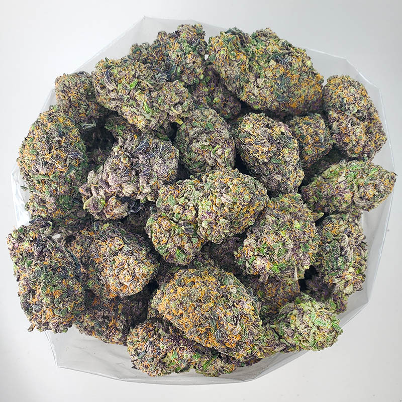 One Punch showcases dense, purple frosty buds coated in shimmering trichomes often giving the flowers an almost sugary, crystalized look. The buds typically show deep greens with bright orange pistils and occasional hints of purple depending on phenotype. In craft markets around Richmond, Burnaby, and Kelowna, the appearance of One Punch makes it stand out in any display case or online product catalog.